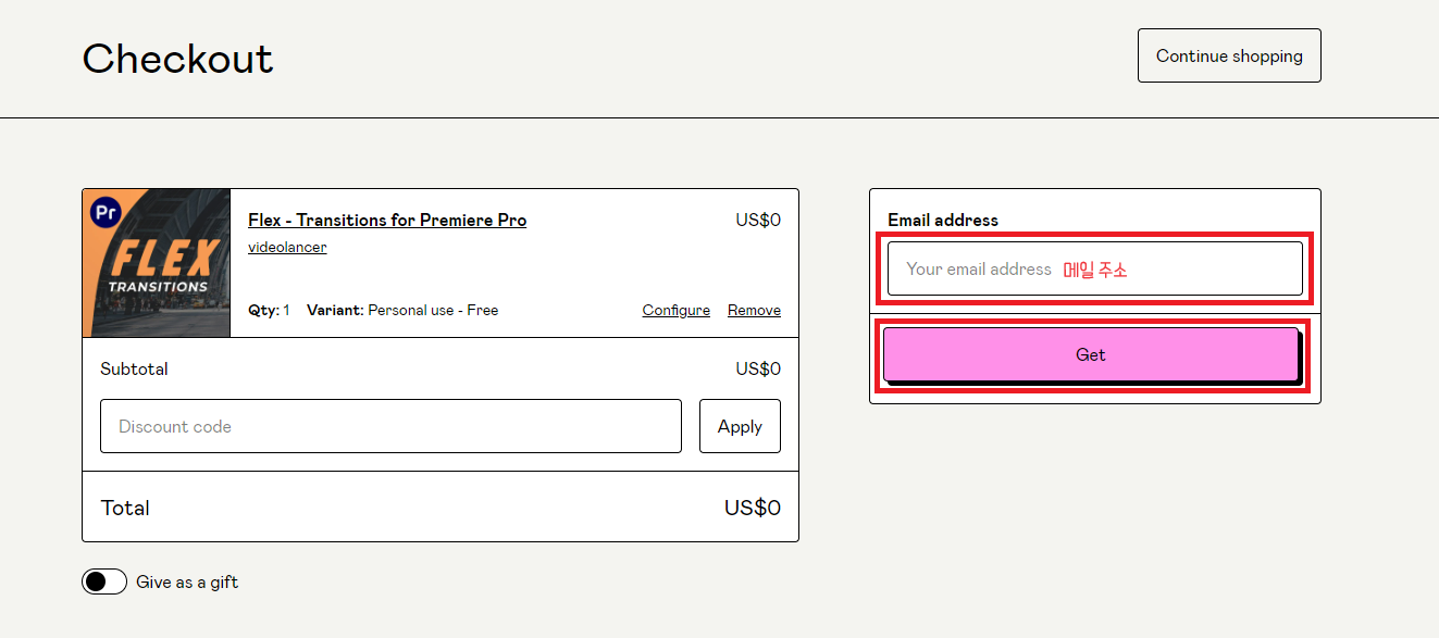 앞의 방법과 마찬가지로 무료로 담아준 다음 이메일을 작성하여 구매를 해줍니다.
